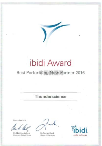 圖1 雷萌生物獲得2016年度德國ibidi年度銷售獎