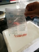 2、冷凍過后的樣品用先用硬物敲碎預處理;